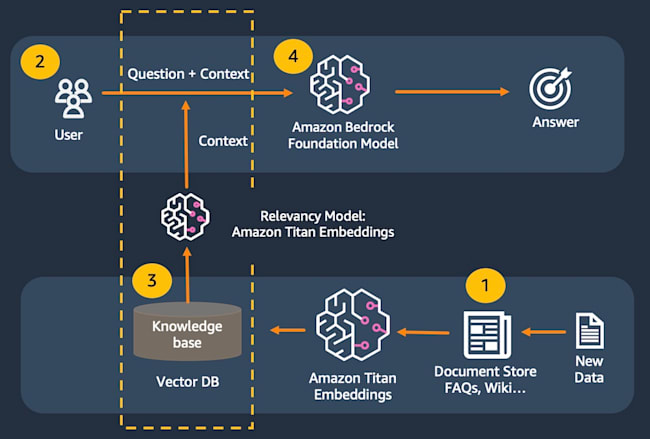 Amazon Bedrock, Retrieval Augmented Generation (RAG) and Amazon Q were the services in most focus throughout the event.