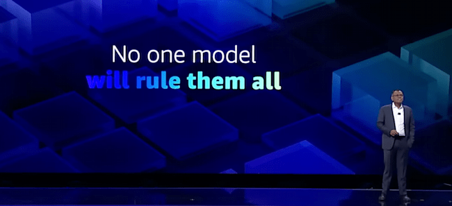 Amazon was pushing hard the idea that GenAI is transforming all businesses. However, the LLM models themselves are still being developed. So, customers need to use a trusted platform and build tools based on the known end-point offered by various AWS services. LLM Models can be plugged-in and replaced.